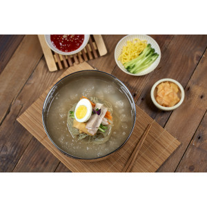 주 원료인 메밀가루로 만든 냉면으로 부드럽고 쫄깃쫄깃한 느낌으로